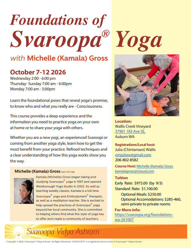 Discover the most important poses of Svaroopa® Yoga, the Primary Spinal Openers. These poses are used at all levels of practice, from introductory through advanced classes. Take them home with you or use Foundations as the prerequisite course for our Teacher Training programs. Successful completion of Foundations qualifies you to be certified as an Introductory Teacher of Svaroopa® Yoga.