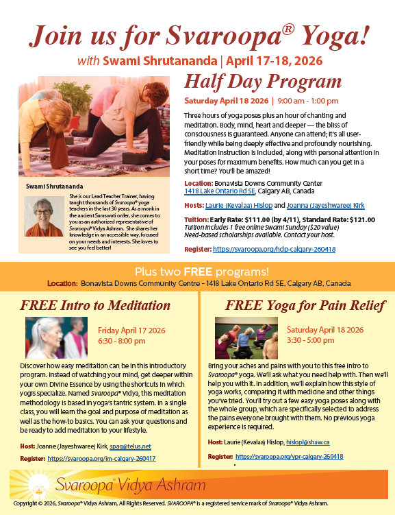 Early Tuition (on or before April 11 2026): $111.00 USD (includes 1 free online Swami Sunday, $20 value)