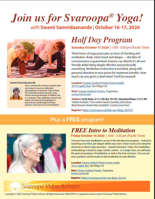 Early Tuition (on or before October 10 2026): $111.00 (includes 1 free online Swami Sunday, $20 value)