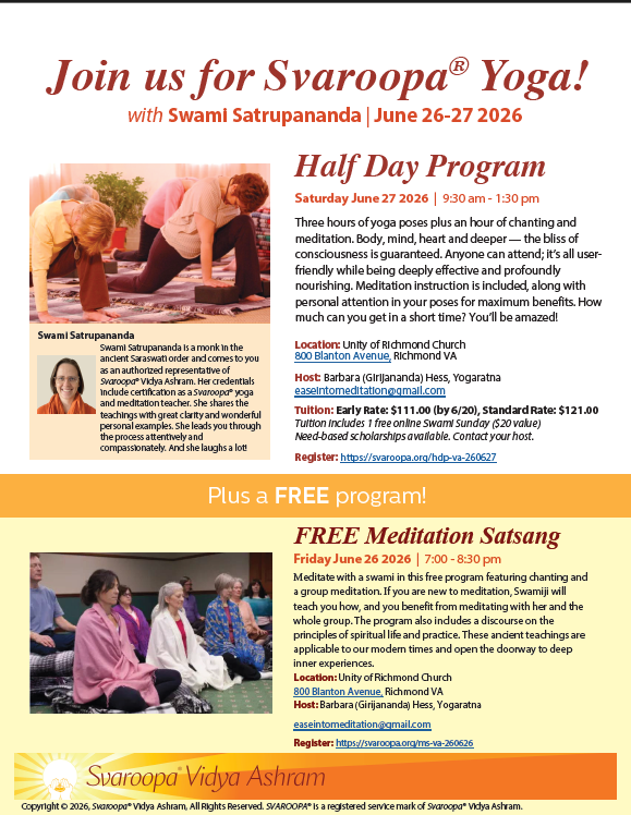 The Ashram looks forward to serving you in this way.