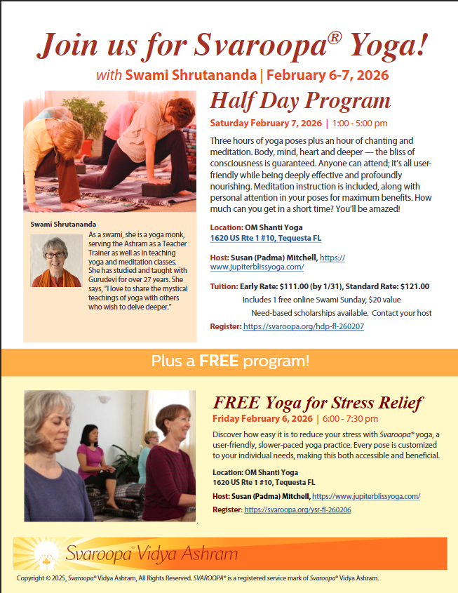 The Ashram looks forward to serving you in this way.